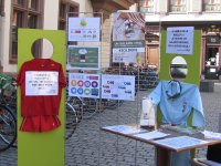 En tant que partenaire actif de COLECOSOL, le Collectif local ESE-Alsace se devait d’y être présent et d’y défendre les valeurs d’une consommation responsable : respect des droits du travail, salaire vital, transparence totale des filières de production… Plus ou moins fatigués ou déçus des stands d’information devant lesquels les chalands passent sans s’arrêter ou s’arrêtent sans grande conviction, les bénévoles ont essayé d’imaginer un stand un peu plus "participatif" en jouant sur la curiosité et en provoquant l’indignation pour inciter à la réaction.