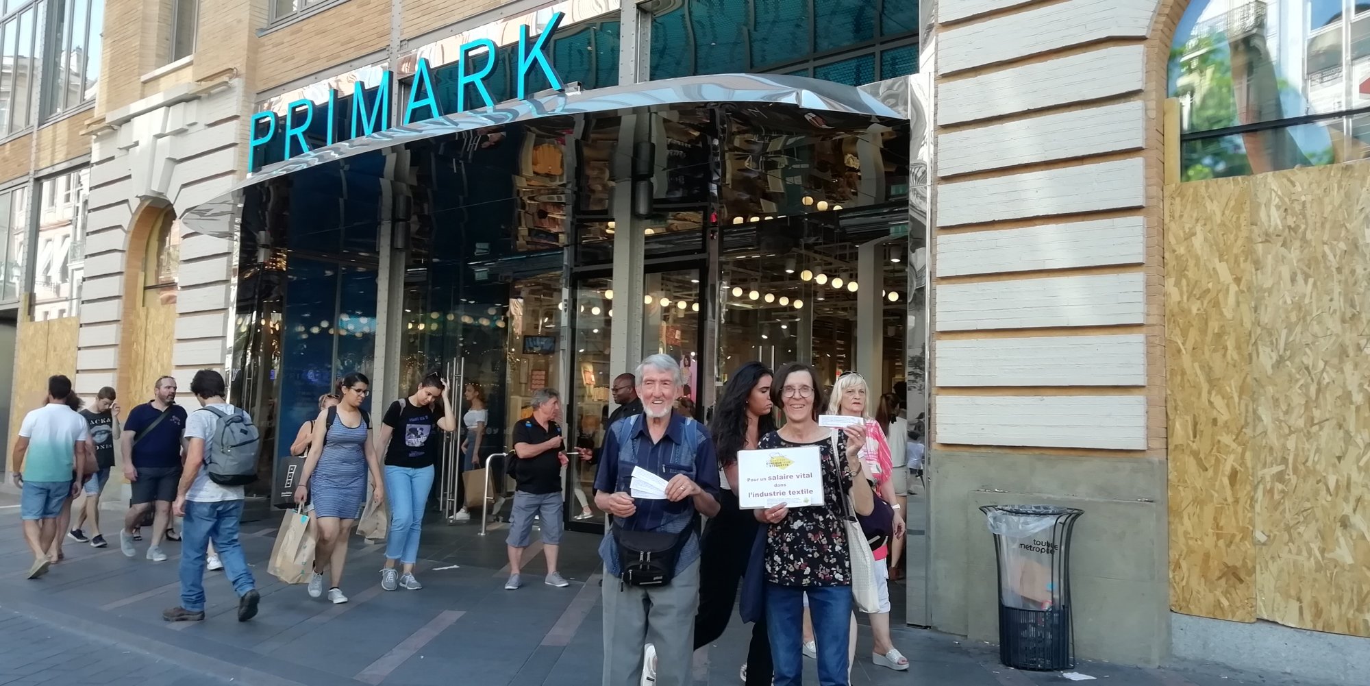 Le 17 octobre 2018, l’enseigne irlandaise de fast fashion à très petit prix Primark a ouvert un magasin au centre de Toulouse, dans un bel immeuble art nouveau ; le Collectif Éthique sur l’étiquette Haute-Garonne décide de se mobiliser, organise une action devant l’enseigne, déploie une banderole "Nos actes citoyens ont un poids politique... nos actes d’achats aussi !", sensibilise les passant-e-s, fait signer une pétition, demande à l’enseigne un rendez-vous pour remettre les signatures. Pas de réponse : Primark nous ignore.