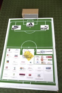 Parallèlement nous sommes allé au devant des passants avec un plateau représentant un match opposant l’équipe des membres de Éthique sur l’étiquette à celle des sponsors de la compétition en les invitant également à marquer un pénalty à cette équipe en plaçant symboliquement une balle de ping-pong dans son but. L’occasion de présenter la campagne et d’inciter à signer en ligne l’interpellation des dirigeants de Adidas, Nike et Puma.