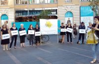 Sous le soleil et quelques 30° à Toulouse, ce mercredi 27 juin 2018, 1er jour des soldes, notre action de rue à l'ombre de Primark.