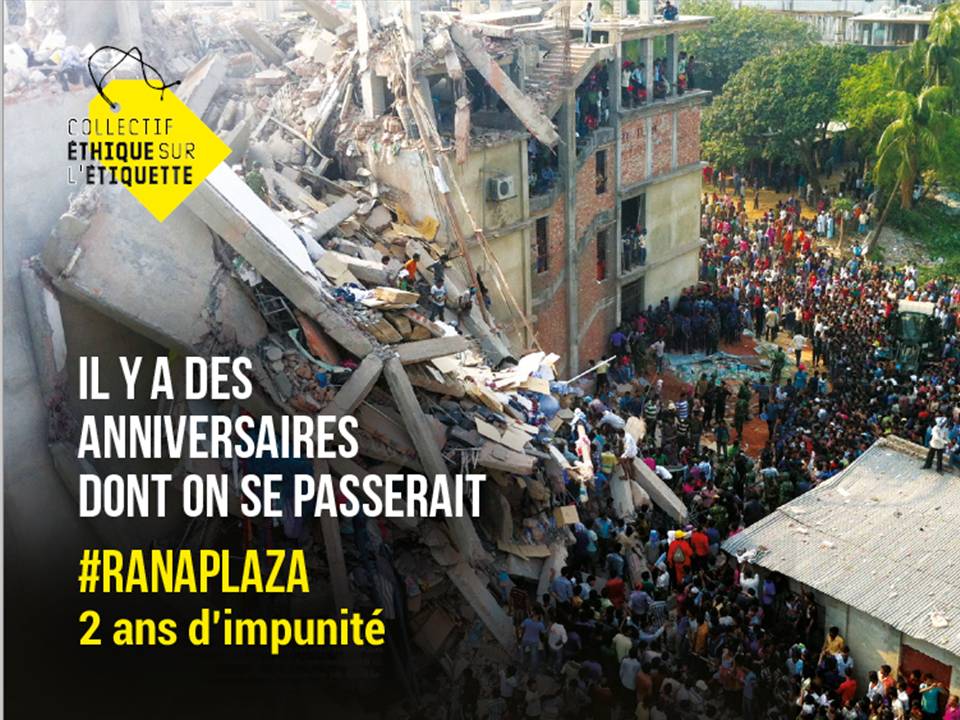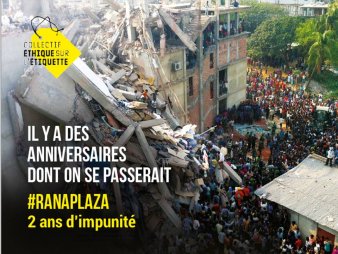 2 ans jour pour jour après la plus grande catastrophe de l’industrie du textile, l’effondrement du Rana Plaza au Bangladesh qui avait causé la mort de 1138 ouvrier-es et fait plus de 2000 blessé-es, les victimes et leurs familles attendent encore réparation. Et les multinationales demeurent libres de toute responsabilité juridique.
