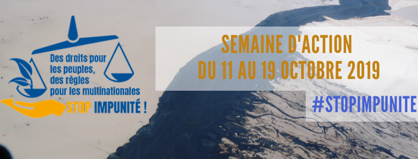Du 11 au 19 octobre, à l’occasion de la 5ème session de négociations du groupe de travail intergouvernemental devant élaborer un traité sur les multinationales et les droits humains, les 200 organisations de la campagne européenne « Des droits pour les peuples, des règles pour les multinationales » lancent une semaine d’action citoyenne visant à obtenir de l’Europe et des États membres un engagement effectif et un soutien ambitieux à un traité visant à mettre un terme à l’impunité dont bénéficient les multinationales quant aux impacts sociaux et environnementaux causés par leur activité, et à assurer l’accès des victimes à la justice.