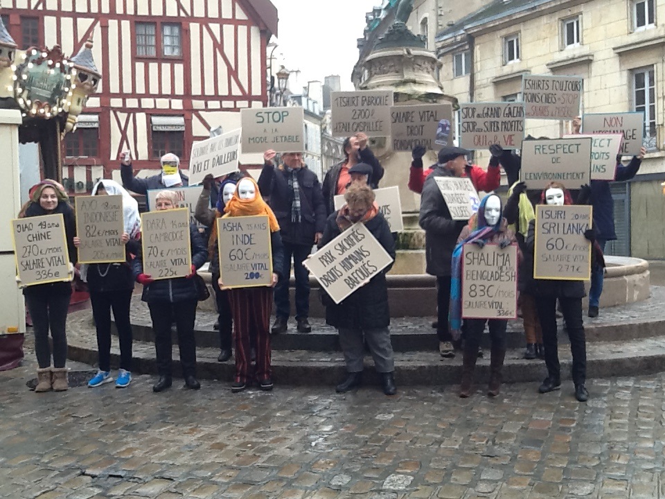 Un t-shirt à 2, 3 ou 4 euros... est-ce possible ? Sous-entendu, qui paye le coût d’un vêtement à prix si bas ? C’est l’accroche choisie par notre collectif lors d’un événement public samedi 26 janvier 2019 organisé au centre ville de Dijon, à l’occasion des soldes. Tenue d’un stand, affiches et distribution de flyers, tenue de mini-débats, proclamations, diffusion de vidéos, exposition de sensibilisation... ainsi que café et crêpes !